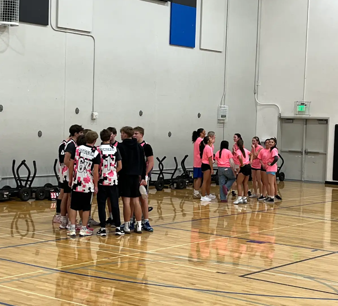 Beyond the final buzzer, the Raindrop Rizzlers’ impact reached further than the scoreboard. Students lingered in the gym afterwards, taking photos of the specially designed pink t-shirts. Their matching hot pink stood out amongst the crowd. The close-knit community exemplified the school spirit Gallatin pledges as each student cheered on the players.
