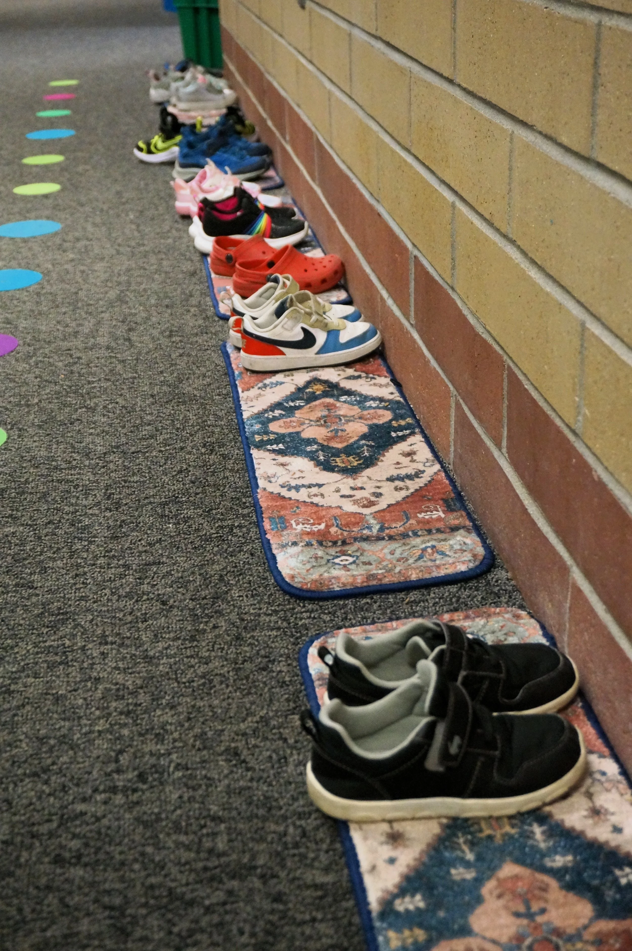 Shoes line the hallways outside of Morning Star’s pre-K early learning center. Photo by Ezra Graham.